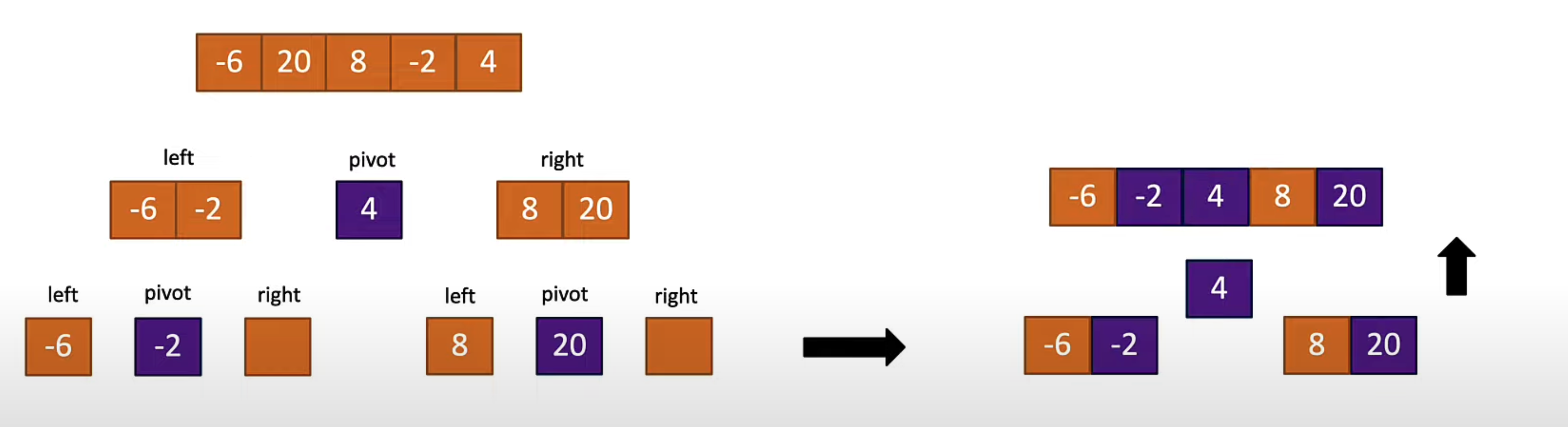 그리고 나서 마지막 단계에서 left나 right와 pivot을 합치고 위로 올라오면서 pivot만 추가해준다.